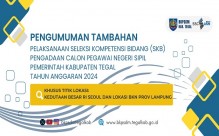 Ralat Pengumuman Sekretaris Daerah Kabupaten Tegal Nomor 800.1.2.2/A.1126/26/2024 Tentang Pelaksanaan Seleksi Kompetensi Bidang (SKB) Pengadaan Calon Pegawai Negeri Sipil Pemerintah Kabupaten Tegal Tahun Anggaran 2024 Dan Nomor 800.1.2.2/A.1179/26/2024 Tentang Pengumuman Tambahan Pelaksanaan Seleksi Kompetensi Bidang (SKB) Pengadaan Calon Pegawai Negeri Sipil Pemerintah Kabupaten Tegal Tahun Anggaran 2024